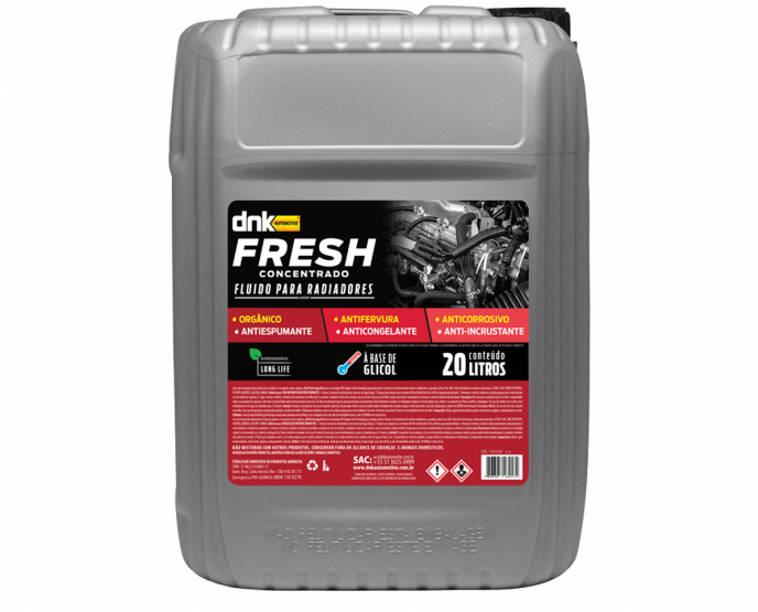 Formulados à base de Glicóis, os produtos da linha DNK Fresh Long Life possuem a tecnologia OAT (Organic Acid Technology) que oferece proteção completa contra a corrosão, cavitação, formação de espuma, congelamento e fervura, além de lubrificar mangueiras, válvula termostática e bomba d’água, prolongando a vida útil de sistemas do arrefecimento e motores à combustão de veículos GNV, flex, álcool, gasolina e diesel da linha leve e também motocicletas.