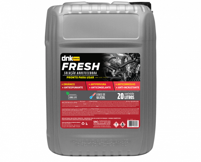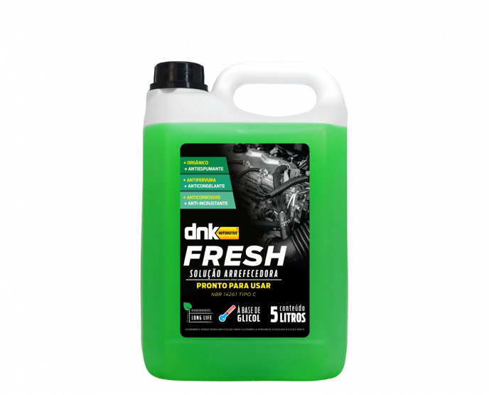 Formulados à base de Glicóis, os produtos da linha DNK Fresh Long Life possuem a tecnologia OAT (Organic Acid Technology) que oferece proteção completa contra a corrosão, cavitação, formação de espuma, congelamento e fervura, além de lubrificar mangueiras, válvula termostática e bomba d’água, prolongando a vida útil de sistemas do arrefecimento e motores à combustão de veículos GNV, flex, álcool, gasolina e diesel da linha leve e também motocicletas.