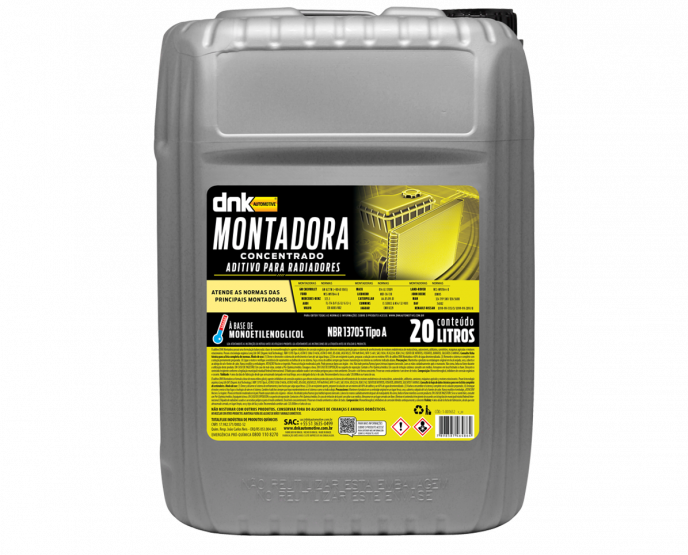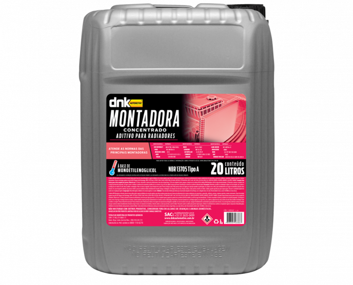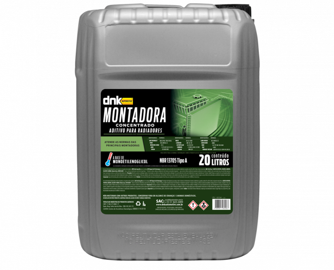 Formulado à base de Monoetilenoglicol, DNK Montadora possui a tecnologia OAT (Organic Acid Technology) que oferece proteção completa contra a corrosão, cavitação, formação de espuma, congelamento e fervura, além de lubrificar mangueiras, válvula termostática e bomba d’água, prolongando a vida útil de sistemas do arrefecimento e motores à combustão de veículos GNV, flex, álcool, gasolina e diesel da linha leve, pesada, maquinários agrícolas e motores estacionários, além de motocicletas com refrigeração líquida.