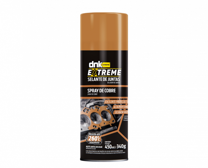 O SELANTE DE JUNTAS EXTREME DA DNK AUTOMOTIVE é um aerossol à base de cobre de secagem rápida e de alto desempenho, que adere e recobre a junta, maximizando a dissipação de calor e preenchendo imperfeições na sua superfície. Sua formulação especial facilita a aplicação e proporciona excelente proteção térmica à junta.