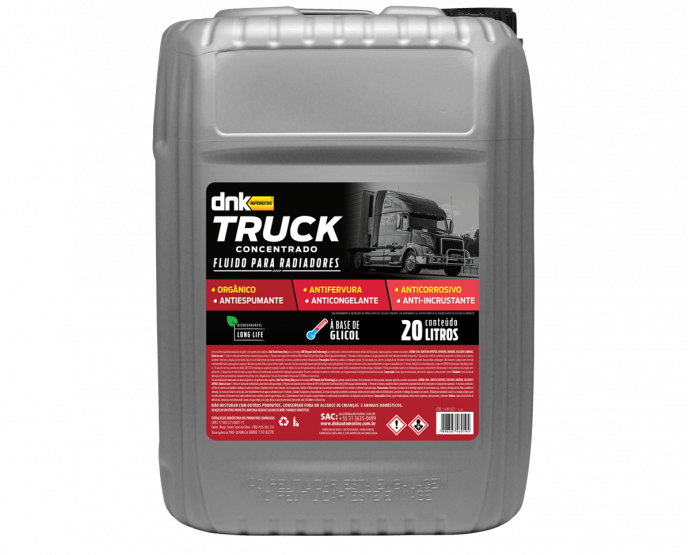 Formulados à base de Glicóis, os produtos da linha DNK Truck Heavy Duty Long Life possuem a tecnologia OAT (Organic Acid Technology) que oferece proteção completa contra a corrosão, cavitação, formação de espuma, congelamento e fervura, além de lubrificar mangueiras, válvula termostática e bomba d’água, prolongando a vida útil de sistemas do arrefecimento de motores à diesel da linha pesada, como caminhões, ônibus, máquinas agrícolas e motores estacionários.