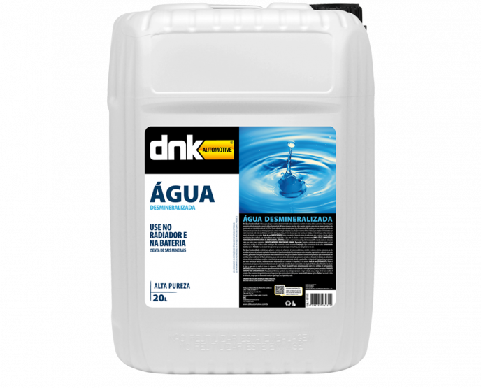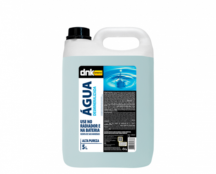 DNK Água Desmineralizada é indicada para aplicação em sistemas de arrefecimento de motores endotérmicos e também em sistemas elétricos automotivos. Com a alta tecnologia do processo de purificação empregado na produção da Água Desmineralizada DNK remove impurezas como cloro, cálcio, magnésio, ferro, sódio, entre outros sais minerais garantindo o alto grau de pureza com condutividade elétrica de até 5µS/cm.