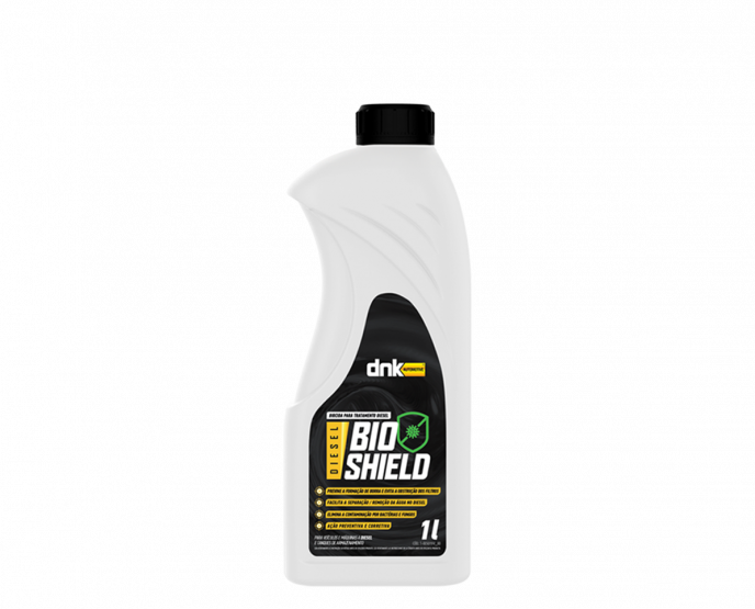 DNK BIOSHIELD TRATAMENTO BIOCIDA PARA DIESEL combate problemas de contaminação microbiana e deterioração em diesel, biodiesel, óleo combustível, gasolina, querosene, tanques submersos, mistura com outros aditivos de combustível, fluidos de aviação, combustível marítimo, biodiesel e tanques de estocagem. DNK BIOSHIELD TRATAMENTO BIOCIDA PARA DIESEL é um agente antimicrobiano de alto desempenho que foi desenvolvido para combater com extrema eficiência Fungos, Algas e Bactérias. Seu tratamento permanente protege o combustível contra a degradação, bem como todo o sistema de armazenagem, linhas de transferência e sistemas de alimentação. Atende a Norma ASTM E-1259:2023.